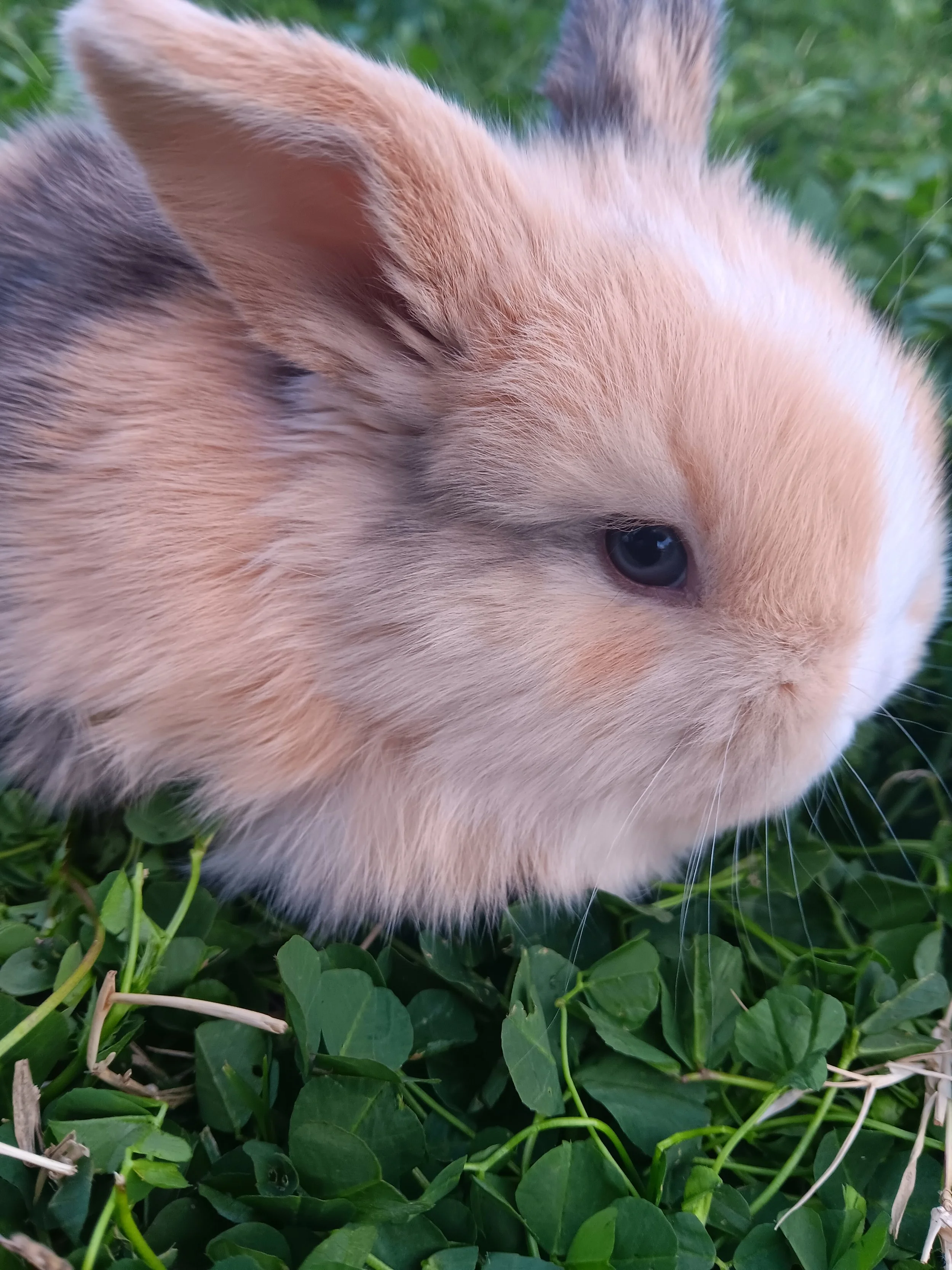 Creamsicle is a harlequin holland lop out of Clementine X Nimbus